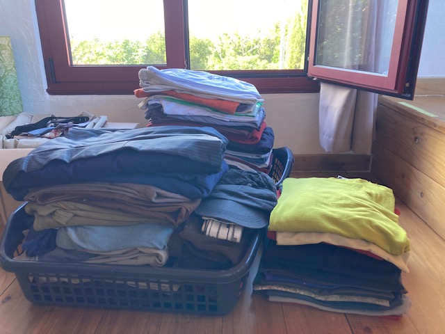 Même si j’ai fait du tri avant de venir à Pico, il y avait beaucoup d’habits dans mes cartons. D’autant plus que j’ai fait une razzia dans une boutique de seconde main avant de paqueter. Et maintenant qu’une fille habite chez moi, faut faire de la place.
